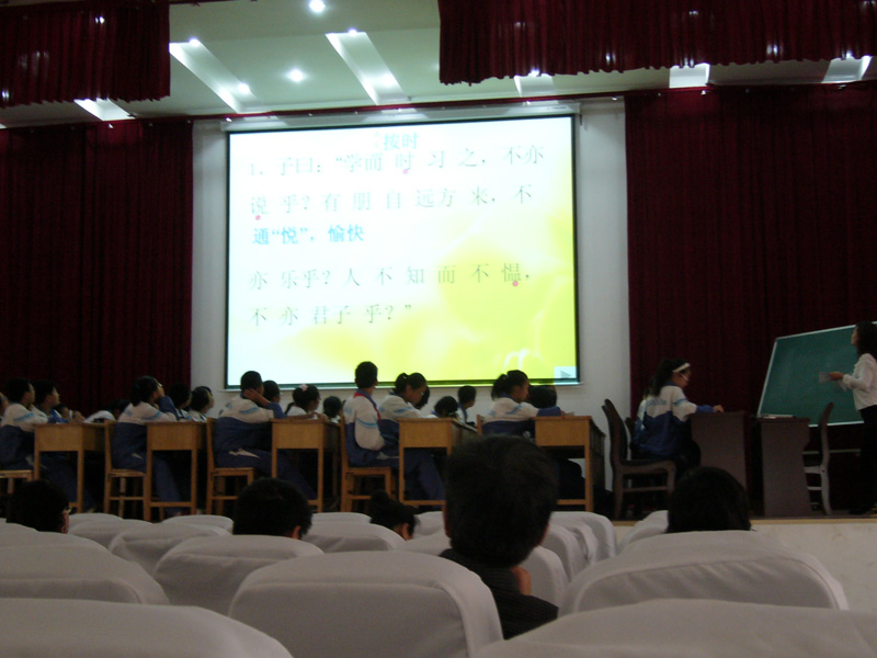 上(shàng)午有(yǒu)四節語文優質課的展示。第一節課是銀川回中的王霞老師(shī)的作文指導課,她把歌(gē)詞引入語文課堂,引導學生進行(xíng)品味賞析,探究優秀歌(gē)曲的歌(gē)詞魅力,引發學生在寫作實踐中,恰當引用歌(gē)詞,提升作文的感染力。第二節課由銀川六中的杜炳卿老師(shī)執教,她講的是《論語十則》,讓人(rén)大(dà)開(kāi)眼界的是,文言文原來(lái)可(kě)以如此引發學生還(hái)原曆史的場(chǎng)景,體(tǐ)味孔子與學生的對話(huà)。第三節課銀川三中的蔡雨慧老師(shī)給學生創設了一個(gè)極具魅力的課堂氛圍,如詩如畫(huà)地欣賞《蔚藍(lán)的王國》,第四節課由我校老師(shī)施學萍執教,她獨辟蹊徑,舉重若輕地引導學生學習朱自清的《綠》,從虛實結合的角度解讀這篇經典厚重的美文,讓人(rén)耳目一新。