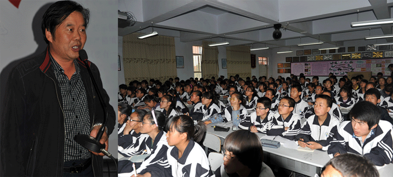 我校高(gāo)級教師(shī)伊惠琴老師(shī)上(shàng)完地理(lǐ)課後,在研討(tǎo)會(huì)上(shàng)跟大(dà)家(jiā)交流。