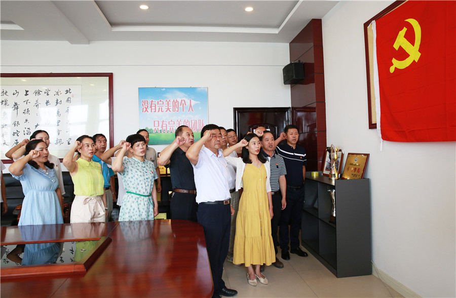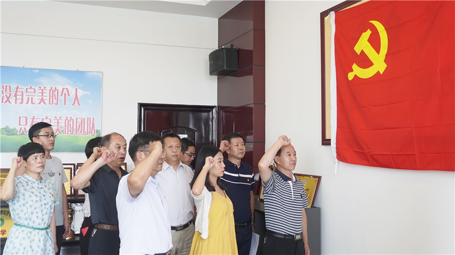 為(wèi)慶祝中國共産黨成立99周年,鞏固深化“不忘初心、牢記使命”主題教育成果,堅定理(lǐ)想信念,增強黨性意識,進一步增強“四個(gè)意識”、堅定“四個(gè)自信”、做到“兩個(gè)維護”, 7月16日,學校黨總支組織新發展的預備黨員和(hé)老黨員開(kāi)展了“新黨員入黨宣誓,老黨員重溫入黨誓詞”主題黨日活動,學校全體(tǐ)黨員參加了這一活動。