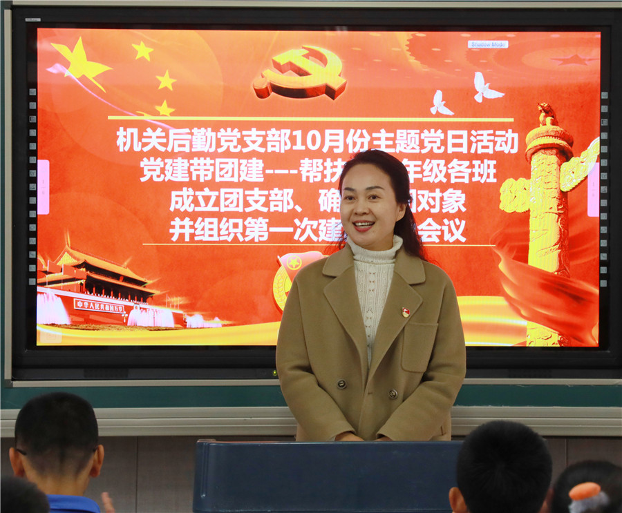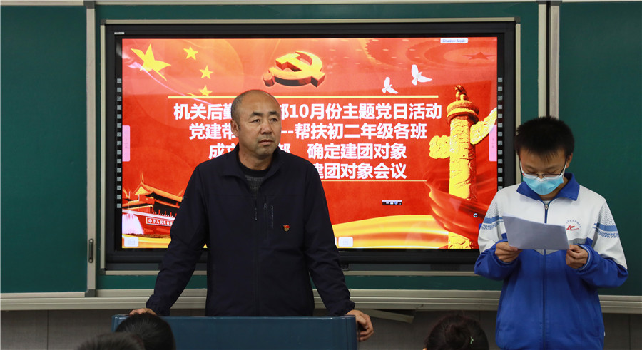 為(wèi)進一步強化我校共青團的組織建設,發揮“黨建帶團建”的優勢,在青少(shǎo)年中普及黨團知識,10月28日下午,我校機關後勤黨支部開(kāi)展了“黨建帶團建—幫扶初二年級部各班成立團支部”的主題黨日活動。