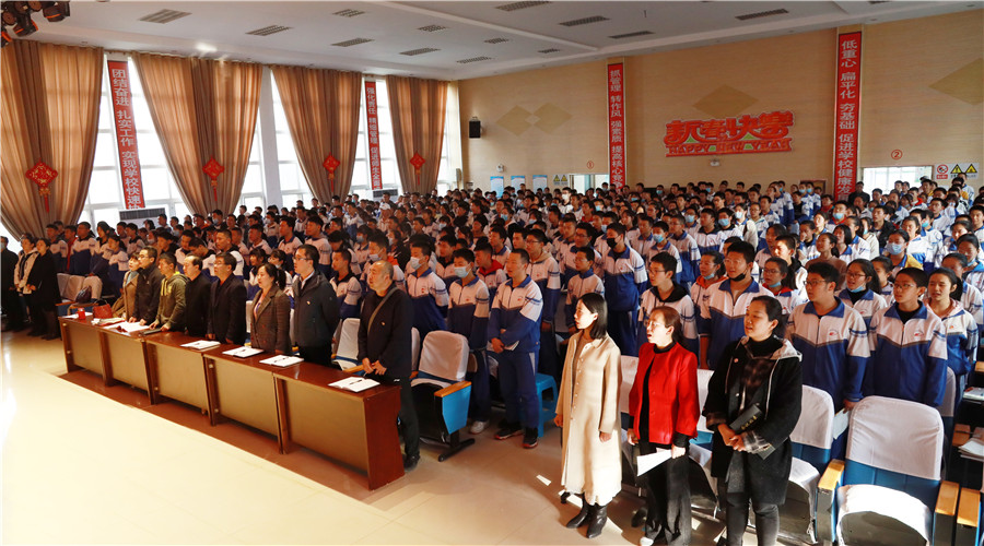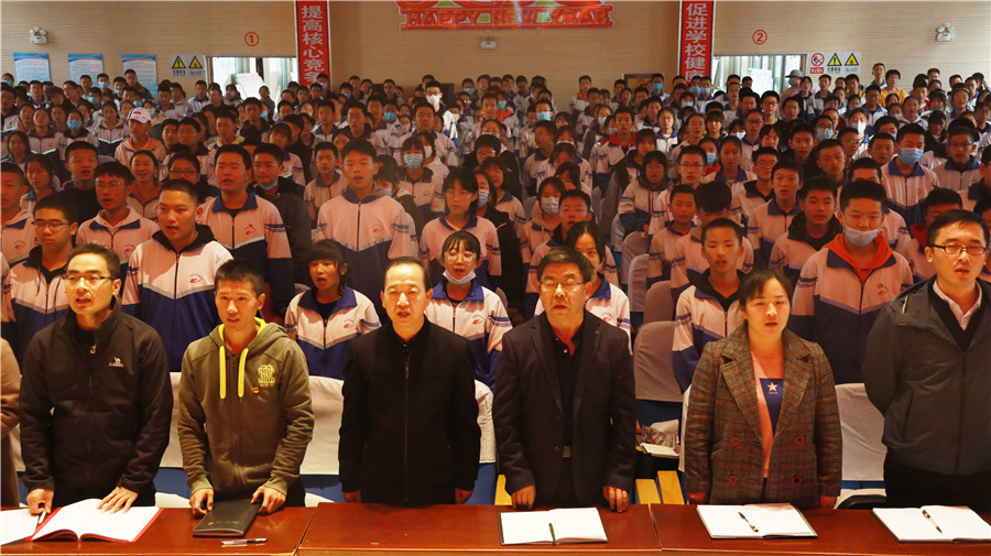 會(huì)前,全體(tǐ)師(shī)生在黨員教師(shī)王靜老師(shī)的指揮下,一起高(gāo)聲唱(chàng)響愛(ài)國主義歌(gē)曲《歌(gē)唱(chàng)祖國》。