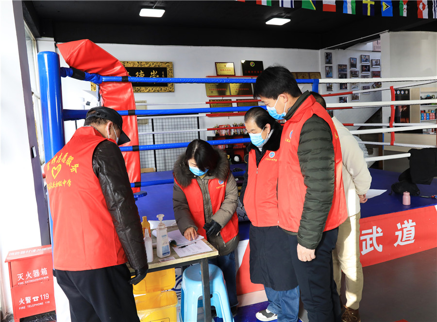 第二組對轄區的商鋪和(hé)培訓機構進行(xíng)疫情防控知識宣傳,并協助檢查是否張貼防疫宣傳資料、佩戴口罩、設置1米線等。