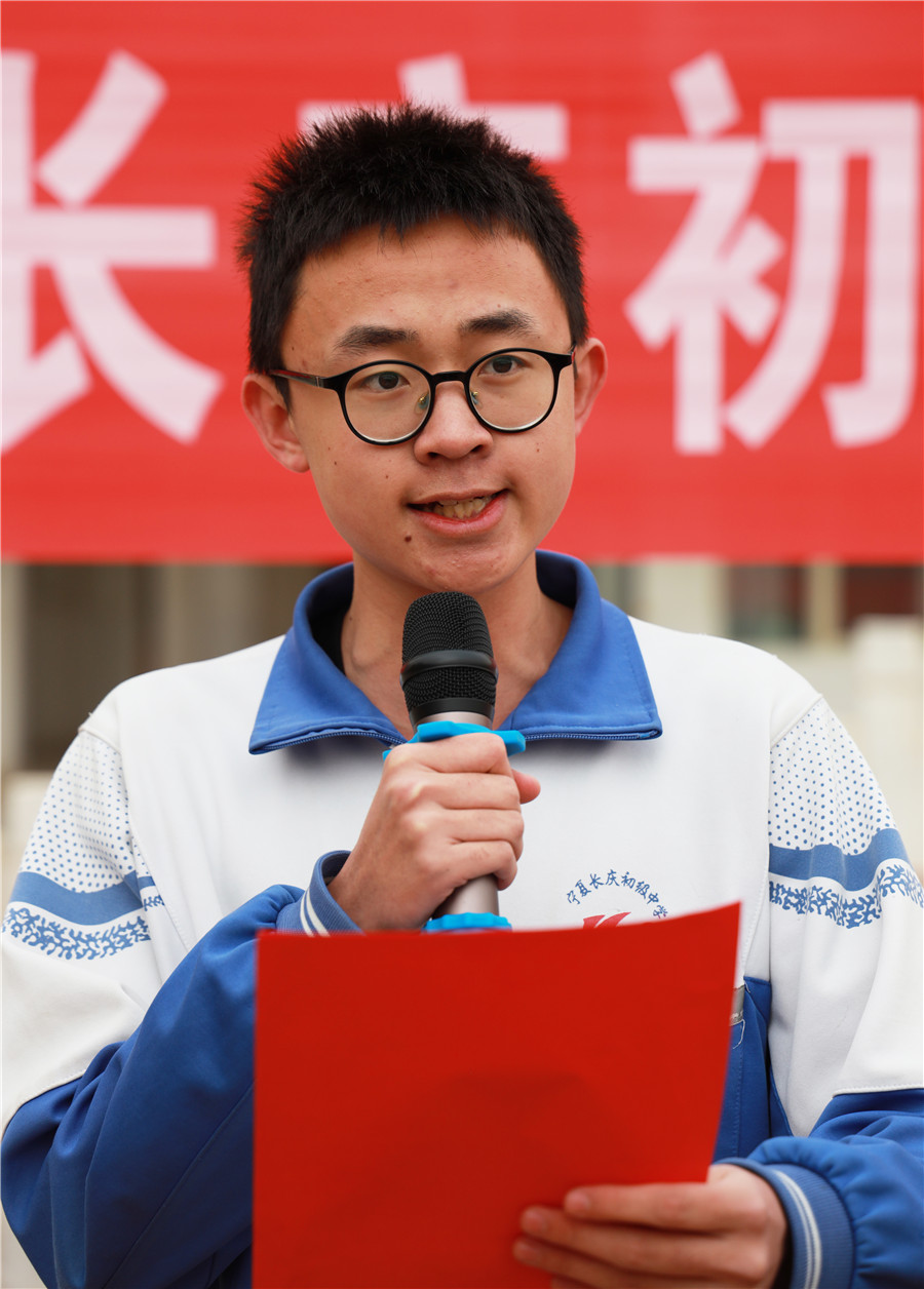 “全力以赴,奮戰百日”,學生代表劉銳同學以充滿感恩的言語代表全體(tǐ)初三年級的學生發言。初三全體(tǐ)學子将不辜負學校和(hé)老師(shī)的厚望、家(jiā)長的期望,刻苦鑽研,勇于拼搏,以最佳的狀态迎接中考。