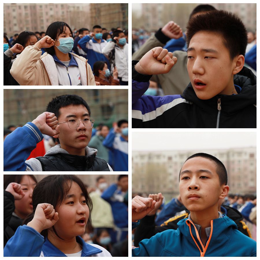 初三全體(tǐ)同學以青春的名義,高(gāo)舉右手,豪邁莊嚴地宣誓:“我決心做到:目标明(míng)确,積極向上(shàng);勤學善問,講究方法;頑強拼搏,戰勝困難;遵守紀律,約束自我;奮勇争先,再創佳績。” 全體(tǐ)學生擡頭挺胸,精神抖擻,聲音(yīn)宏亮,充滿自信地發出了他們的铮铮誓言。