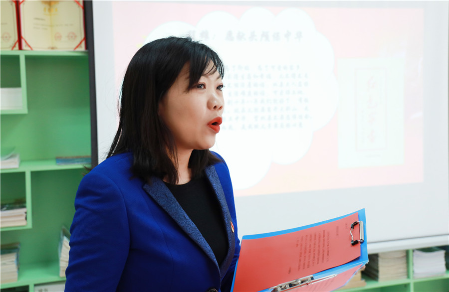 我校黨員教師(shī)曹麗(lì)霞朗誦瞿秋白緻妻子楊之華的信。