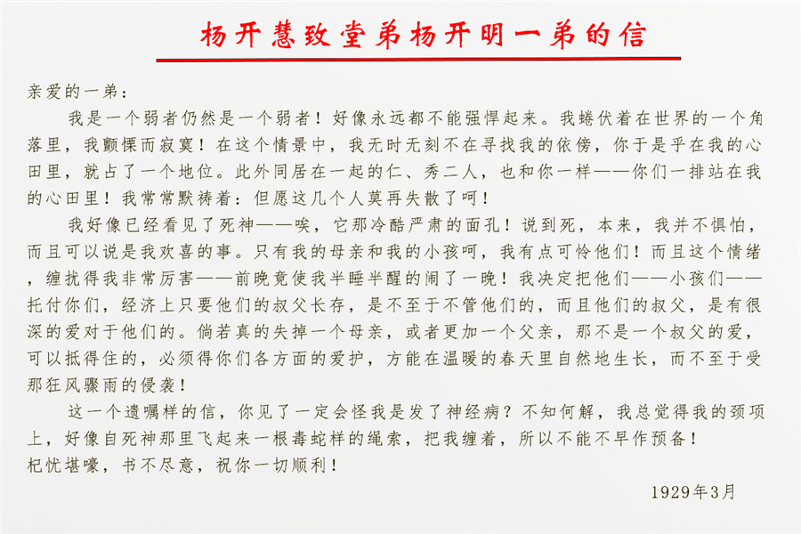 中國聯通(tōng)公司銀川市分公司興慶區黨支部分享家(jiā)書(shū)—楊開(kāi)慧緻堂弟楊開(kāi)明(míng)的信。