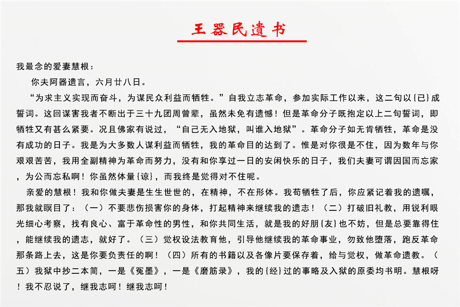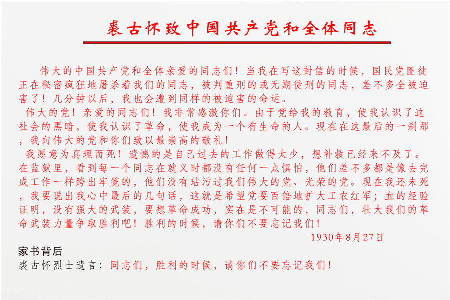 “偉大(dà)的黨!親愛(ài)的同志(zhì)們!我非常感激你(nǐ)們。由于黨給我的教育,使我認識了這社會(huì)的黑(hēi)暗,使我認識了革命,使我成為(wèi)一個(gè)有(yǒu)生命的人(rén)。現在在這最後的一刹那(nà),我向偉大(dà)的黨和(hé)你(nǐ)們緻以最崇高(gāo)的敬禮……。”歲月