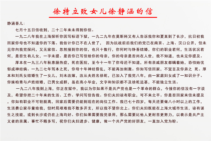 銀燕園社區黨支部分享家(jiā)書(shū)—徐特立緻女兒徐靜涵的書(shū)信。