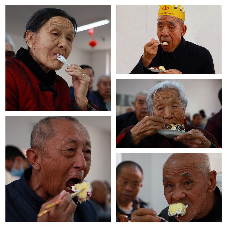 分享生日蛋糕開(kāi)心快樂的老人(rén)們。