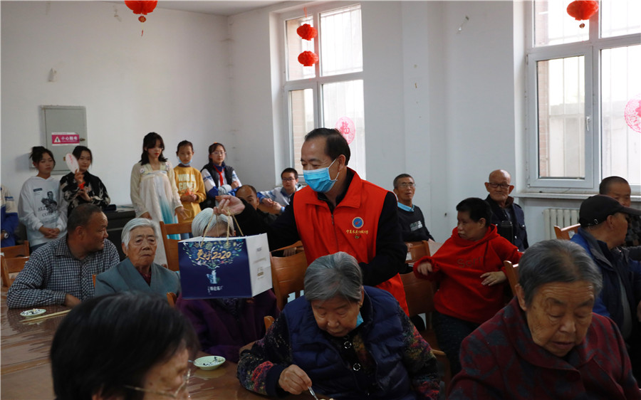 張忠國書(shū)記給老人(rén)們送上(shàng)祝福的禮物。