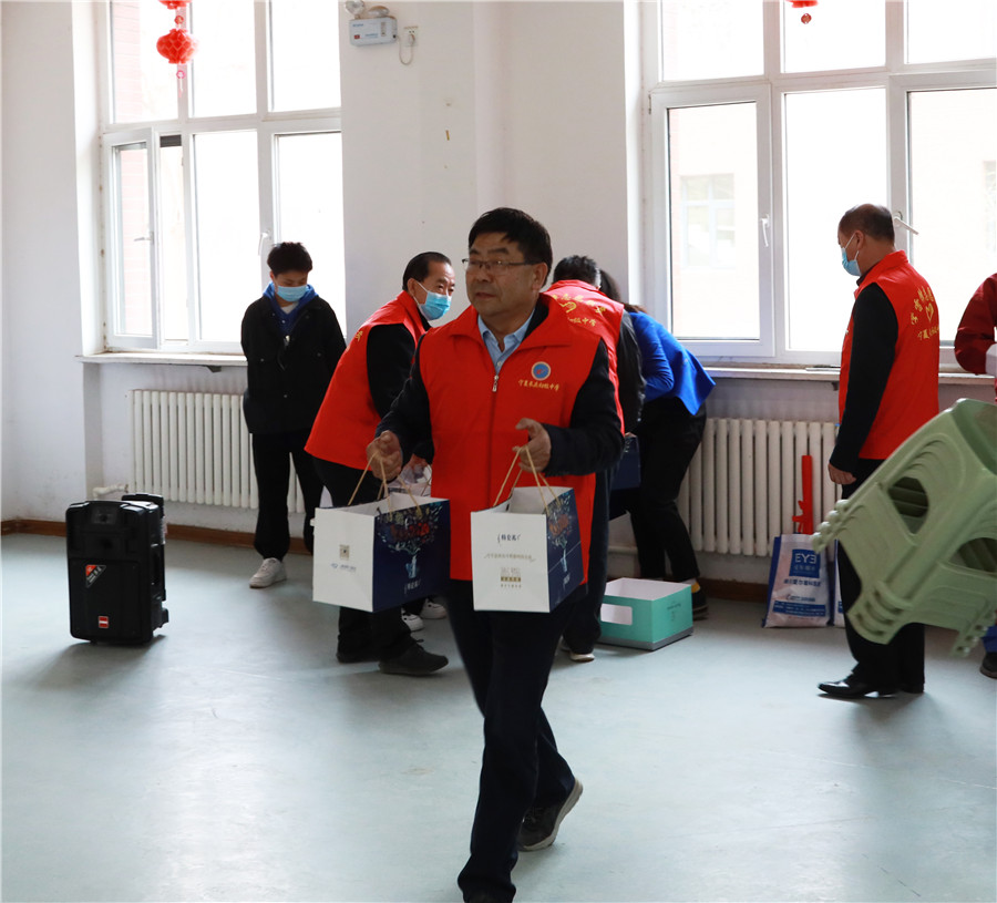 孫會(huì)鈞校長給老人(rén)們送上(shàng)祝福的禮物。