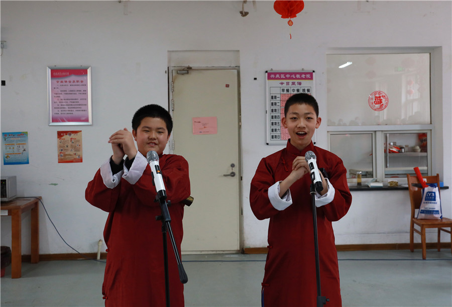 歡樂的節目精彩紛呈:瞧!這兩個(gè)小(xiǎo)相聲演員表演的有(yǒu)模有(yǒu)樣,帶來(lái)的相聲《我忍不了》逗樂了現場(chǎng)的觀衆…。