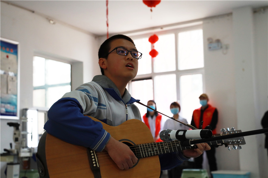 初二的年級的同學獻上(shàng)自彈自唱(chàng)《時(shí)光》。