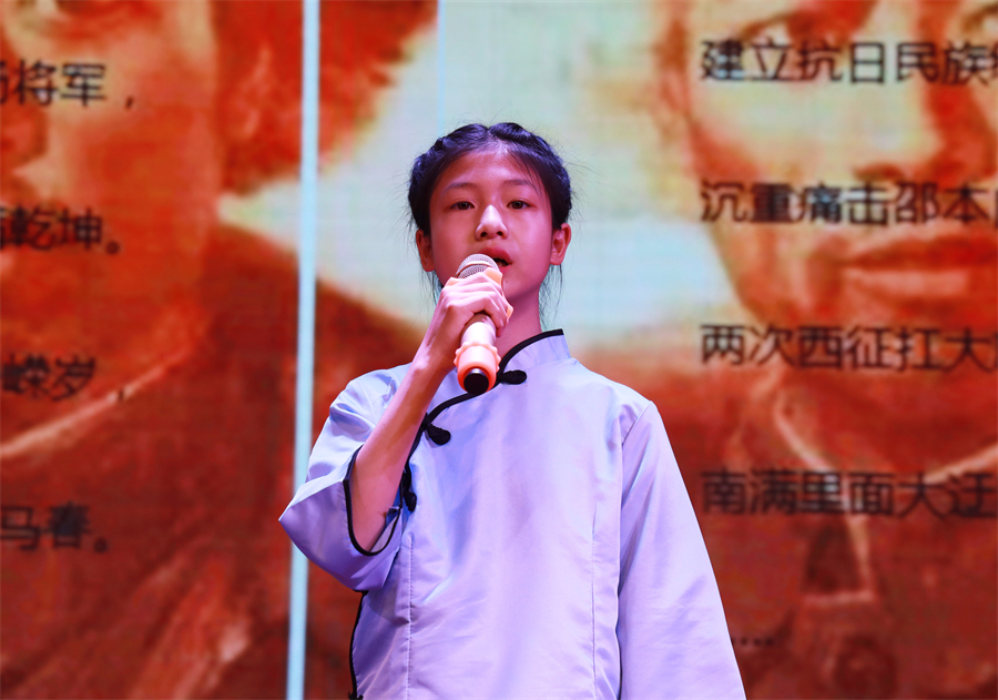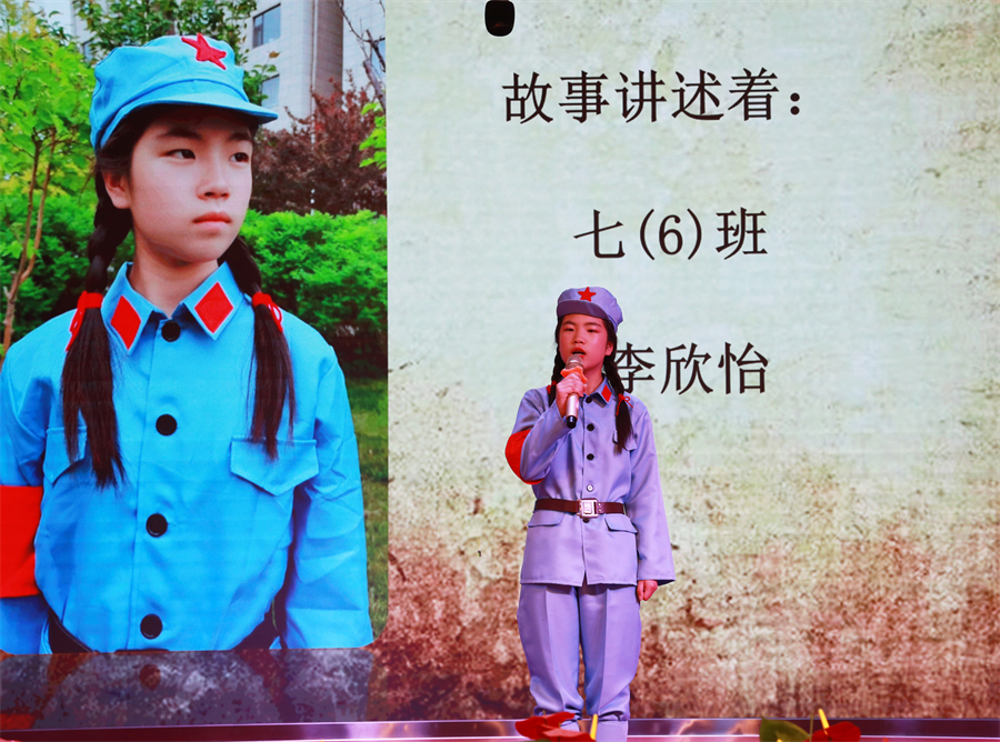 當李思涵同學擲地有(yǒu)聲的喚出:“怕死就不當共産黨!”時(shí),我仿佛看見劉胡蘭站在舞台上(shàng)振臂高(gāo)呼。她犧牲時(shí)年僅十五歲,毛澤東為(wèi)她親筆題詞:“生的偉大(dà),死的光榮!”這些(xiē)故事從一個(gè)十二歲的同學口中娓娓道(dào)來(lái),更是讓人(rén)感喟萬分。