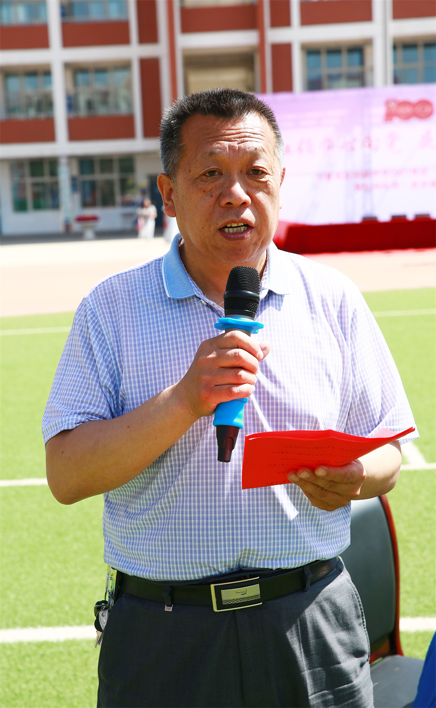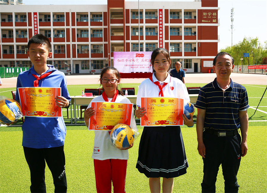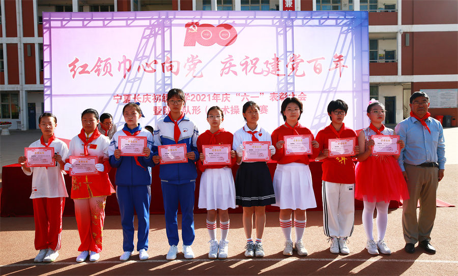 在慶祝中國共産黨成立100周年之際,我校隆重舉辦以“學黨史、辦實事”為(wèi)宗旨的慶“六一”系列活動。61日上(shàng)午,在學校田徑場(chǎng)舉行(xíng)慶“六一”表彰大(dà)會(huì)暨隊列隊形(武術(shù)操)比賽。大(dà)會(huì)在莊嚴的國歌(gē)聲中拉開(kāi)帷幕。