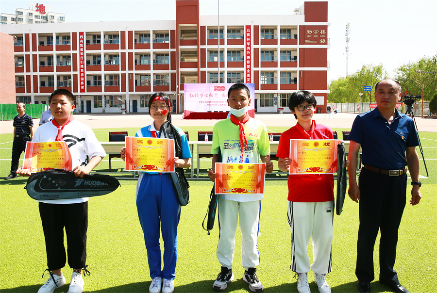 馬玉柱副校長校長為(wèi)隊列隊形、武術(shù)操比賽榮獲一等獎的初一(4)班、初一(7)、初一(8)班、初一(9)班頒獎。