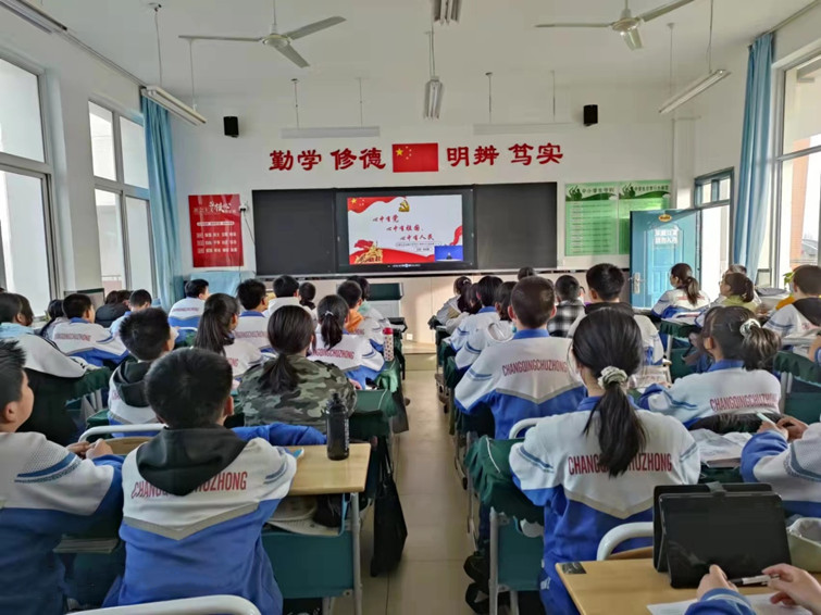 為(wèi)落實立德樹(shù)人(rén)根本任務,推進我校思想政治理(lǐ)論課的建設,強化新時(shí)代愛(ài)國主義教育,落實學校思政工作“書(shū)記抓”的責任,318日,在學校黨總支的指導下,教務處組織了“師(shī)生同上(shàng)一節思政課”的活動。學校黨總支書(shū)記張忠國同志(zhì)以《心中有(yǒu)黨心中有(yǒu)祖國 心中有(yǒu)人(rén)民》為(wèi)主題,為(wèi)初二初三年級全體(tǐ)學生上(shàng)了一節大(dà)思政課,因疫情防控要求,以班級為(wèi)單位,采取線上(shàng)視(shì)頻的方式進行(xíng)。