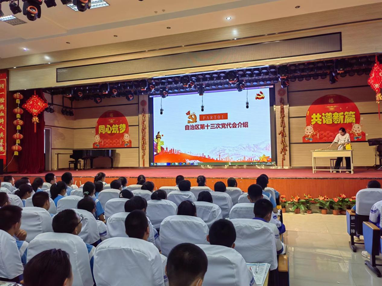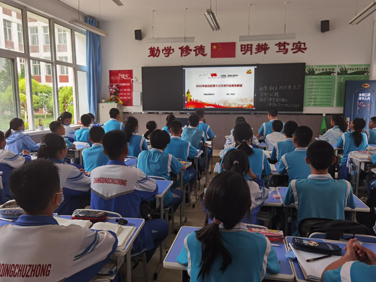 學習好、宣傳好、貫徹好自治區第十三次黨代會(huì)會(huì)議精神是當前和(hé)今後一個(gè)時(shí)期的重要任務,為(wèi)持續推進我校青少(shǎo)年思想政治素養,了解我區現階段發展曆程,培養主人(rén)翁意識。6月20日,在學校黨總支的指導下,教務處組織了“師(shī)生同上(shàng)一節思政課”的活動。黨總支委員、副校長馬玉柱同志(zhì)以《自治區第十三次黨代會(huì)報告解讀》為(wèi)主題,為(wèi)我校全體(tǐ)師(shī)生上(shàng)了一節大(dà)思政課,各班學生觀看了視(shì)頻,開(kāi)展了學習交流。