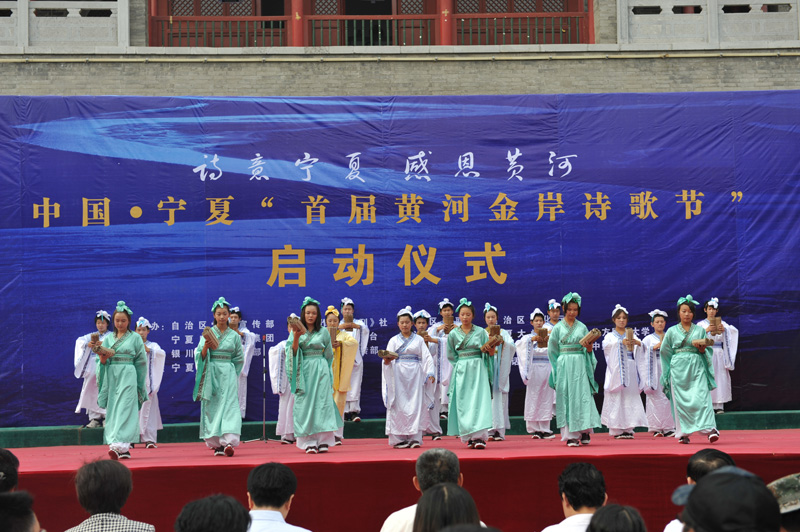 6月16日上(shàng)午9時(shí),陽光下的玉皇閣音(yīn)樂悠揚,詩聲琅琅,來(lái)自長慶初級中學的學生們,身着古裝,集體(tǐ)朗誦《黃河(hé)頌文》。朗誦聲中,中國·甯夏“首屆黃河(hé)金岸詩歌(gē)節”啓動儀式暨詩人(rén)采風活動在銀川市玉皇閣文化廣場(chǎng)隆重舉行(xíng)。