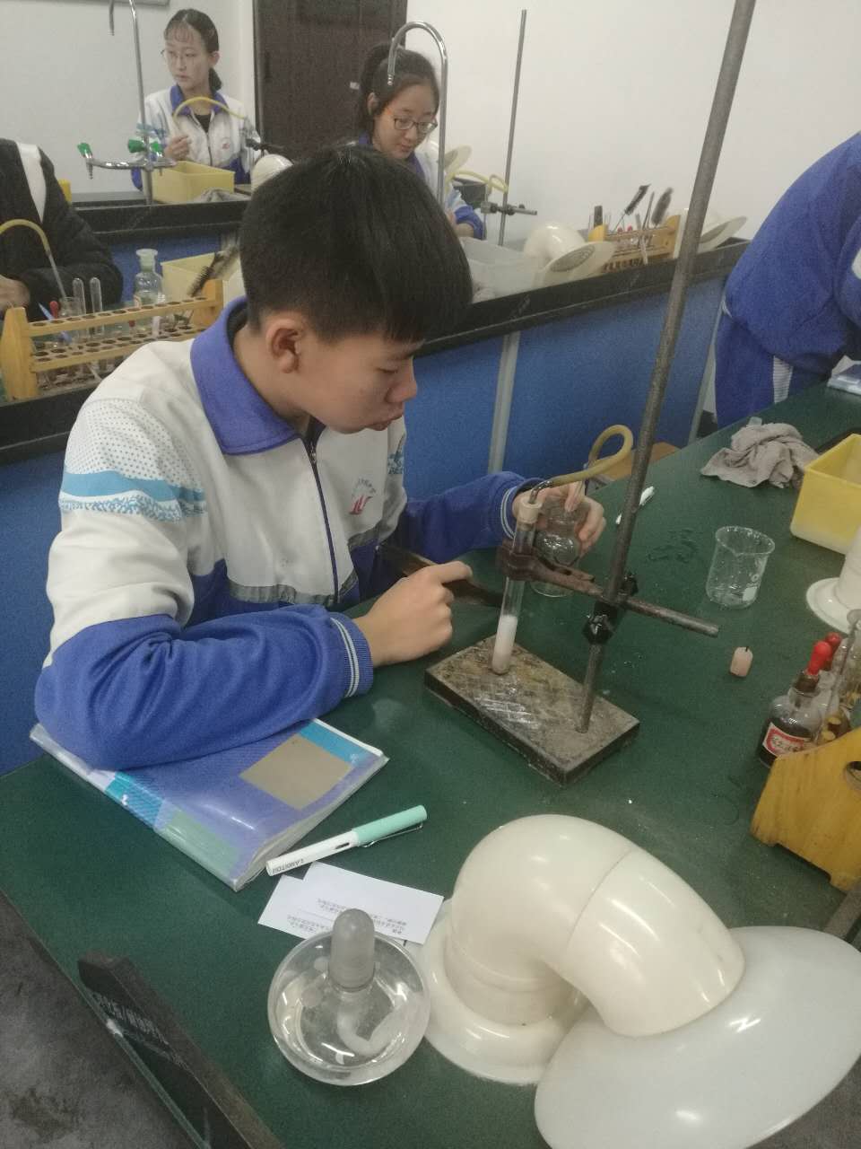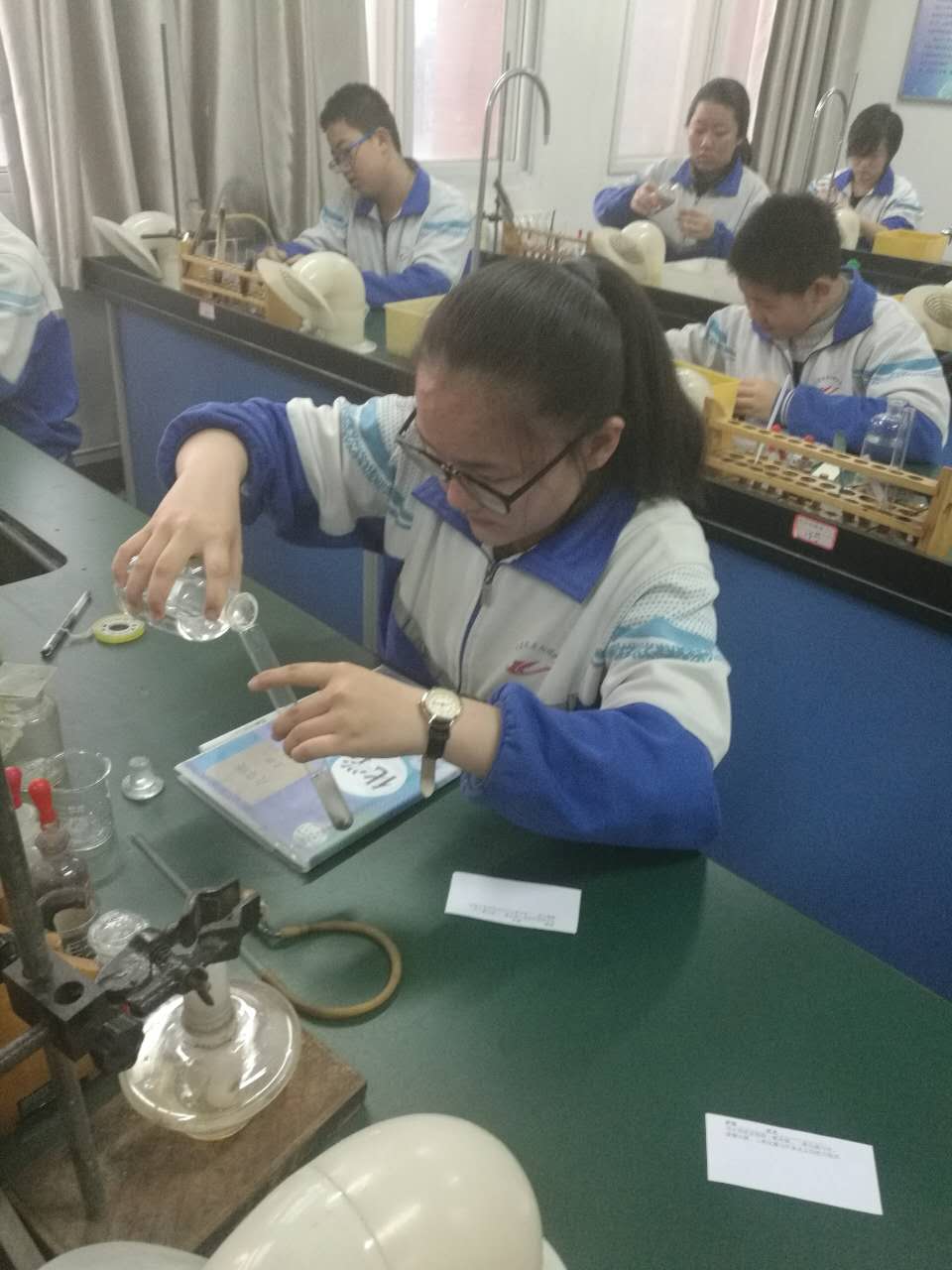 圖為(wèi)學生參加物理(lǐ)、化學實驗操作測試。